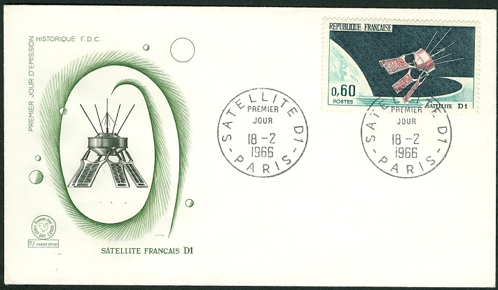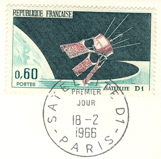 Dem am 11. Februar 1966 gestarteten Satelliten D1 (Diapason, auch D1-A), dem Vorgänger der beiden Diadème-Satelliten, widtmete die französische Post dieses Postwertzeichen zu 60 Centimes.