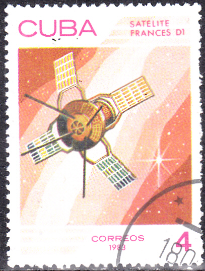 Zum "Tag der Raumfahrt" 1983 wurde in Kuba diese Marke (MiNr 2733) mit der Abbildung des französischen Satelliten "D1" herausgegeben.