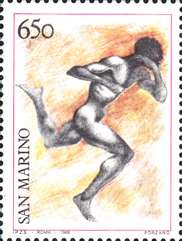 Zu den Olympischen Spielen 1988 in Seoul erschien in San Marino eine Marke (MiNr 1399) in einer Blockausgabe (MiNr Block 11) mit der Darstellung eines Läufers in Anlehnung an Darstellungen in der Antike.