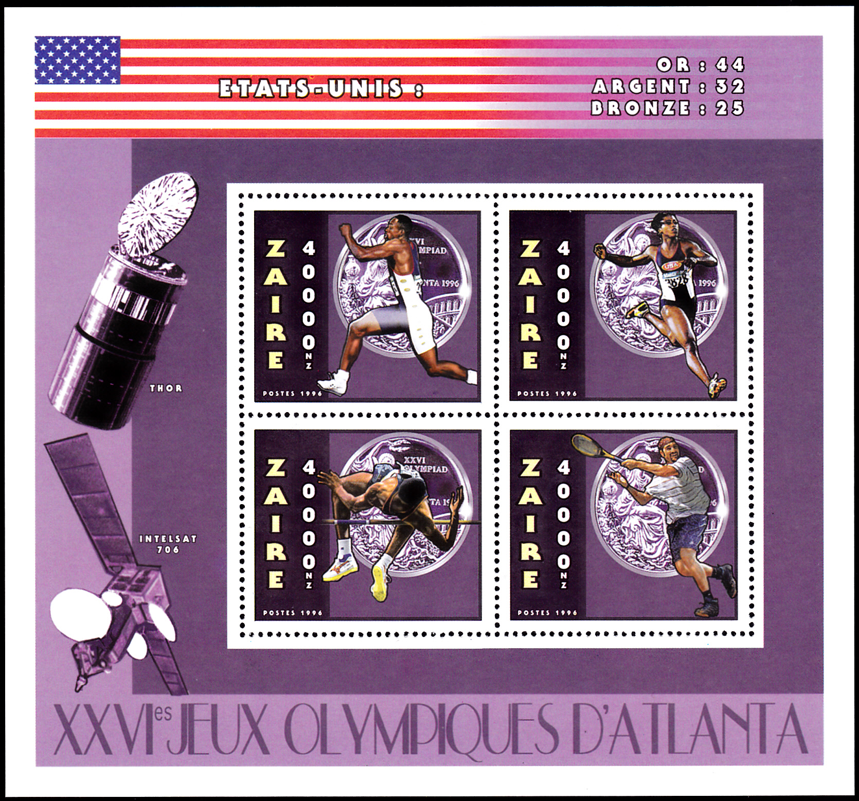 Aus Zaire (Kongo - Kinshasa) kommt diese Marke (MiNr 1182 A) mit der Olympiasiegerin 1996 im 100m-Lauf, Gail Devers.