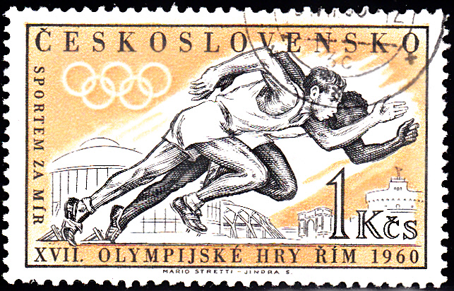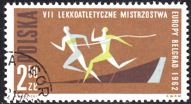 Die Zuschlagsmarke "Für den Sport" zu 80Pf+40Pf der Deutschen Bundespost aus dem Jahre 1986 (MiNr 1269) ist zu den Leichtathletik-Europameisterschaften erschienen und zeigt Kurzstreckenläufer am Ziel. Hier eine Marke mit dem Ersttagsonderstempel Bonn.