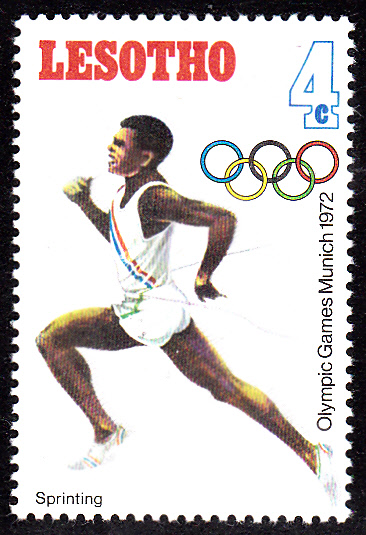 Auch in Lesotho ist auf einer Marke (MiNr 124) zu den Olympischen Spielen 1972 ein Sprinter zu sehen.
