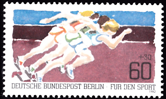 Auf einer Marke "Für den Sport" 1982 aus Berlin (MiNr 664) sehen wir Kurzstreckenläufer beim Start.