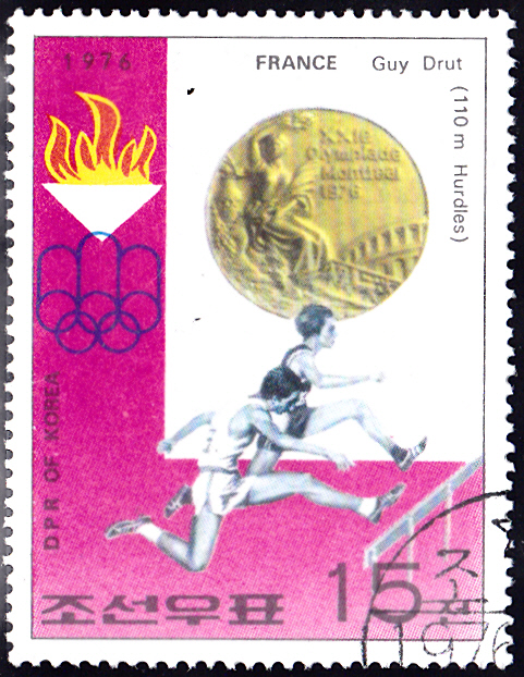 Diese Marke der Serie (MiNr 1540) aus Korea-Nord bildet Guy Drut beim Hürdenlauf ab.