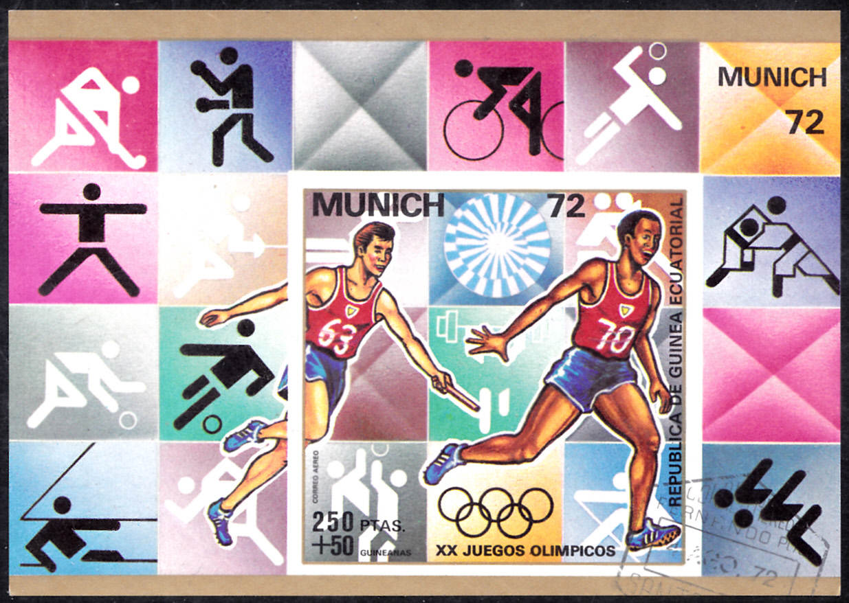 In Äquatorial-Guinea ist dieser Block (MiNr Block 18 mit Marke MiNr. A 115) zu den Sommerspielen 1972 in München erschienen. Gezeigt wird der Wechsel bei einem Staffellauf der Herren.