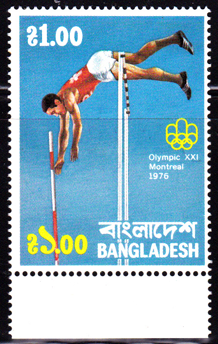 In Bangladesch erschien zu den Olympischen Sommerspielen in Montreal diese Marke (MiNr 82) mit der Abbildung eines Stabhochspringers beim Überqueren der Latte.