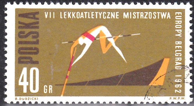 Zu den Leichtathletik-Europameisterschaften 1962 in Belgrad erschien in Polen diese Marke (MiNr 1338 A) mit der Abbildung eines stilisierten Stabhochspringers.