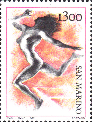 Zu den Olympischen Spielen 1988 in Seoul erschien in San Marino eine Marke (MiNr 1401) in einer Blockausgabe (MiNr Block 11) mit der Darstellung einer Weitspringerin in Anlehnung an Darstellungen in der Antike.
