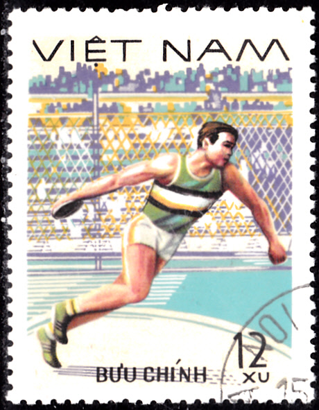 Aus Vietnam kommt diese Marke (MiNr 961) mit einem Diskuswerfer.