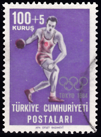 Aus der Türkei kommt diese Marke (MiNr 1927) zu den Olympischen Spielen 1964 mit einer Szene aus einem Diskuswerfer.