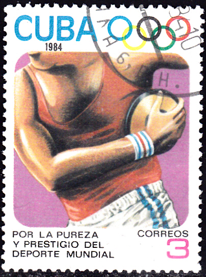Einen Diskuswerfer sehen wir auf dieser Marke aus Kuba (MiNr 2869).