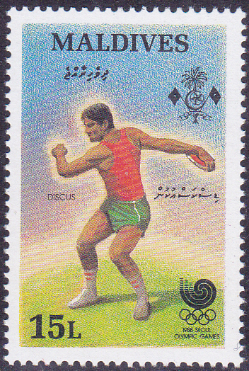 In der Serie aus Malediven zu den Sommerspielen 1988 ist diese Marke (MiNr 1307) mit einem Diskuswerfer erschienen.