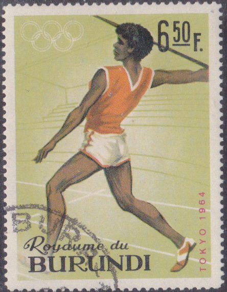Eine Marke aus Burundi (MiNr 129 A) zeigt einen Speerwerfer.