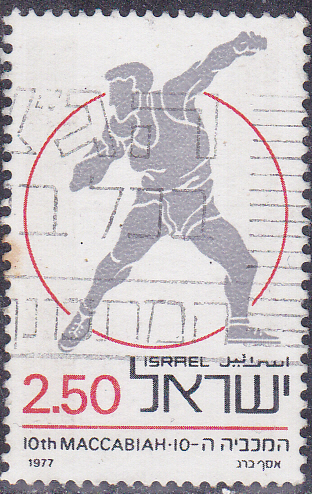 Zur 10. Makkabiade in Israel (größte internationale jüdische Sportveranstaltung, sie ist ähnlich wie die Olympischen Spiele konzipiert) ist 1977 diese Marke mit einem Kugelstoßer in Israel (MiNr 705) erschienen.