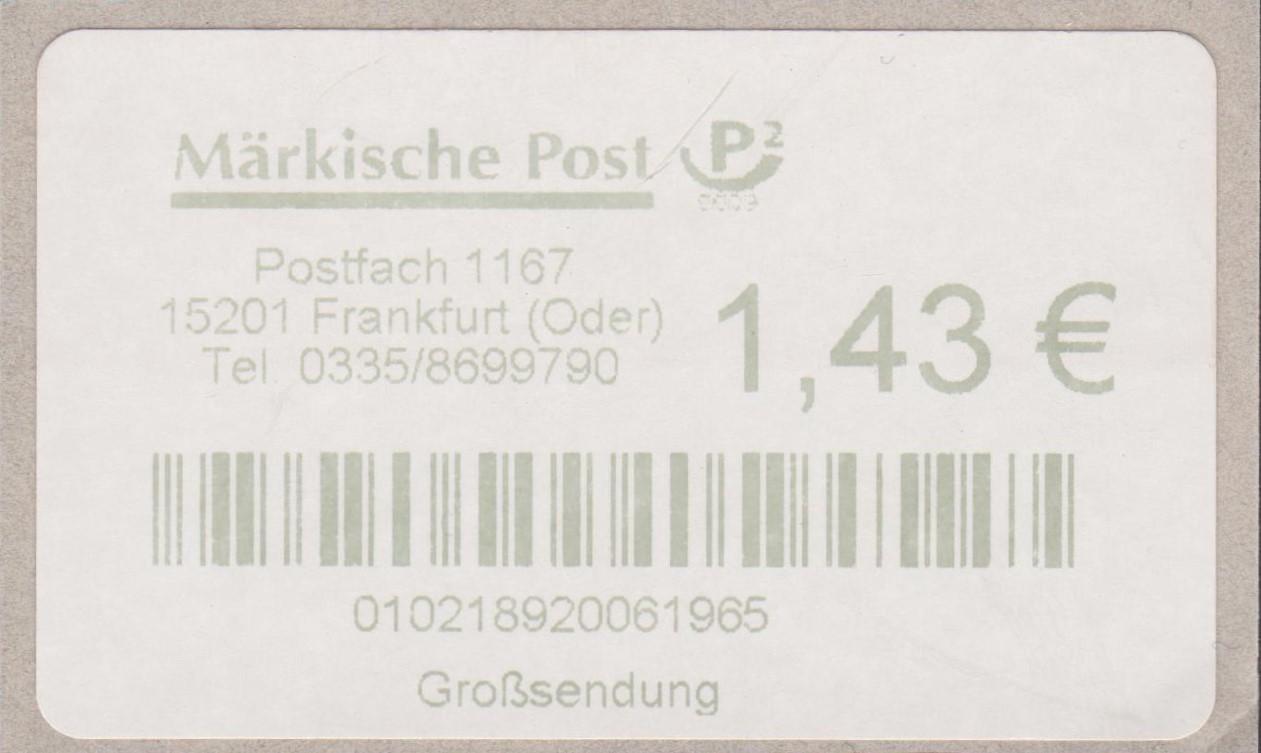 Foren-Übersicht Fragen und Diskussion Deutschland Deutschland ab 1945 Privatpost - Märkische Post