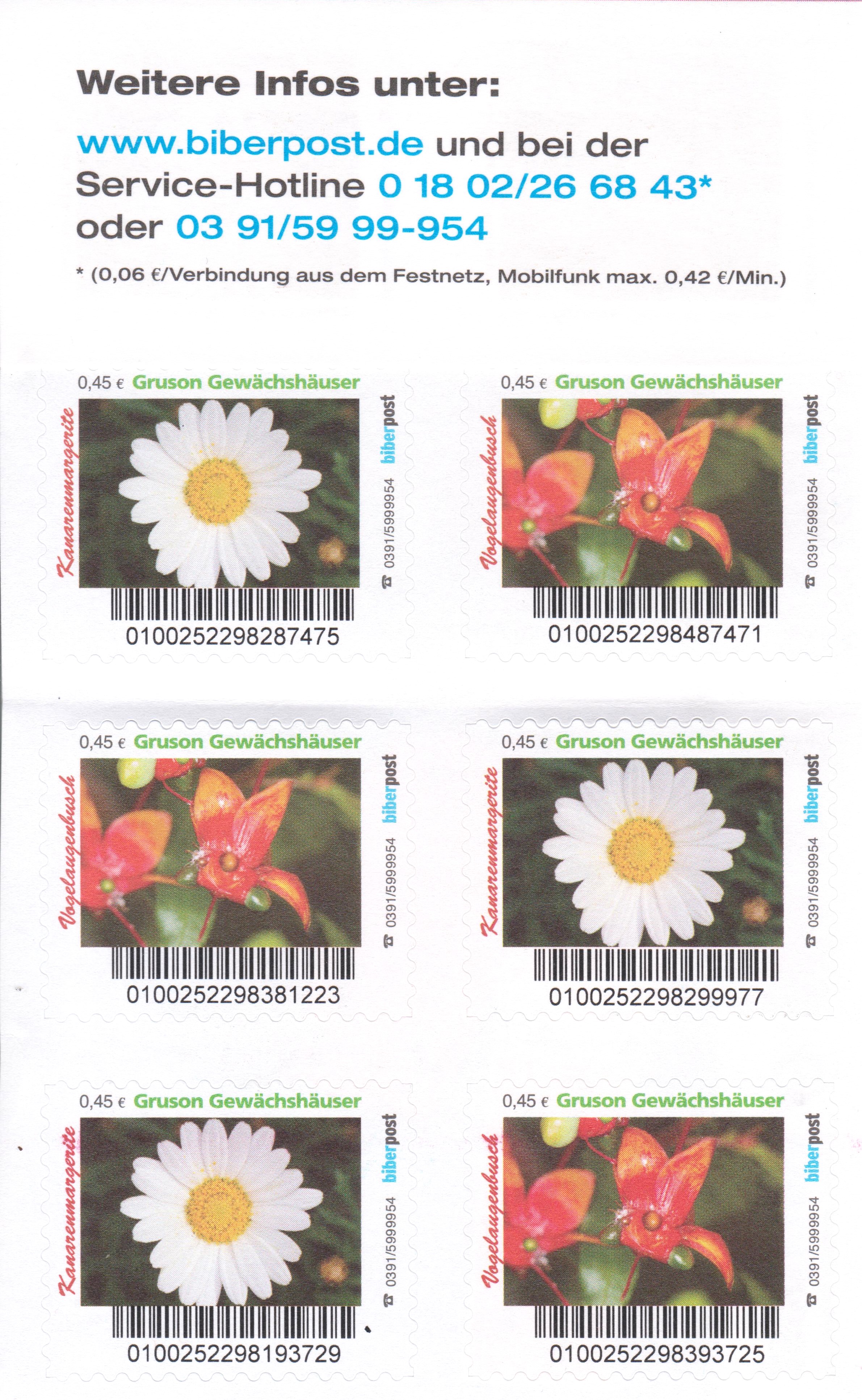Auflage: 1.250 solche Markenheftchen (= je 6.250 Einzelmarken von beiden Motiven)