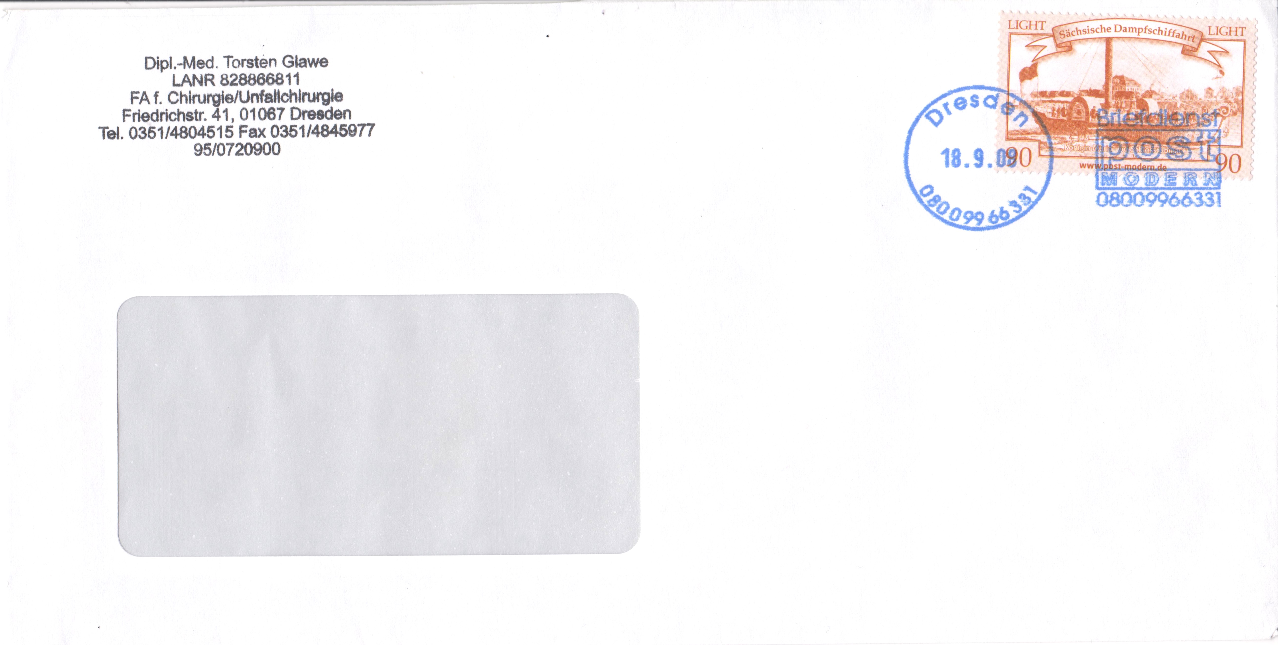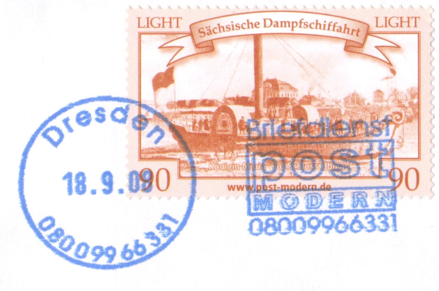 Brief aus Dresden, bei dem eine Privatpostmarke mit einem Label überklebt wurde:
