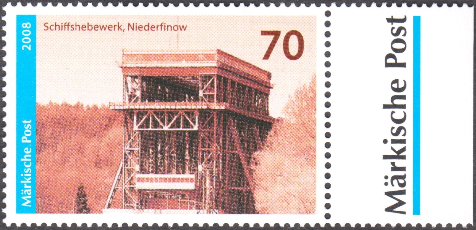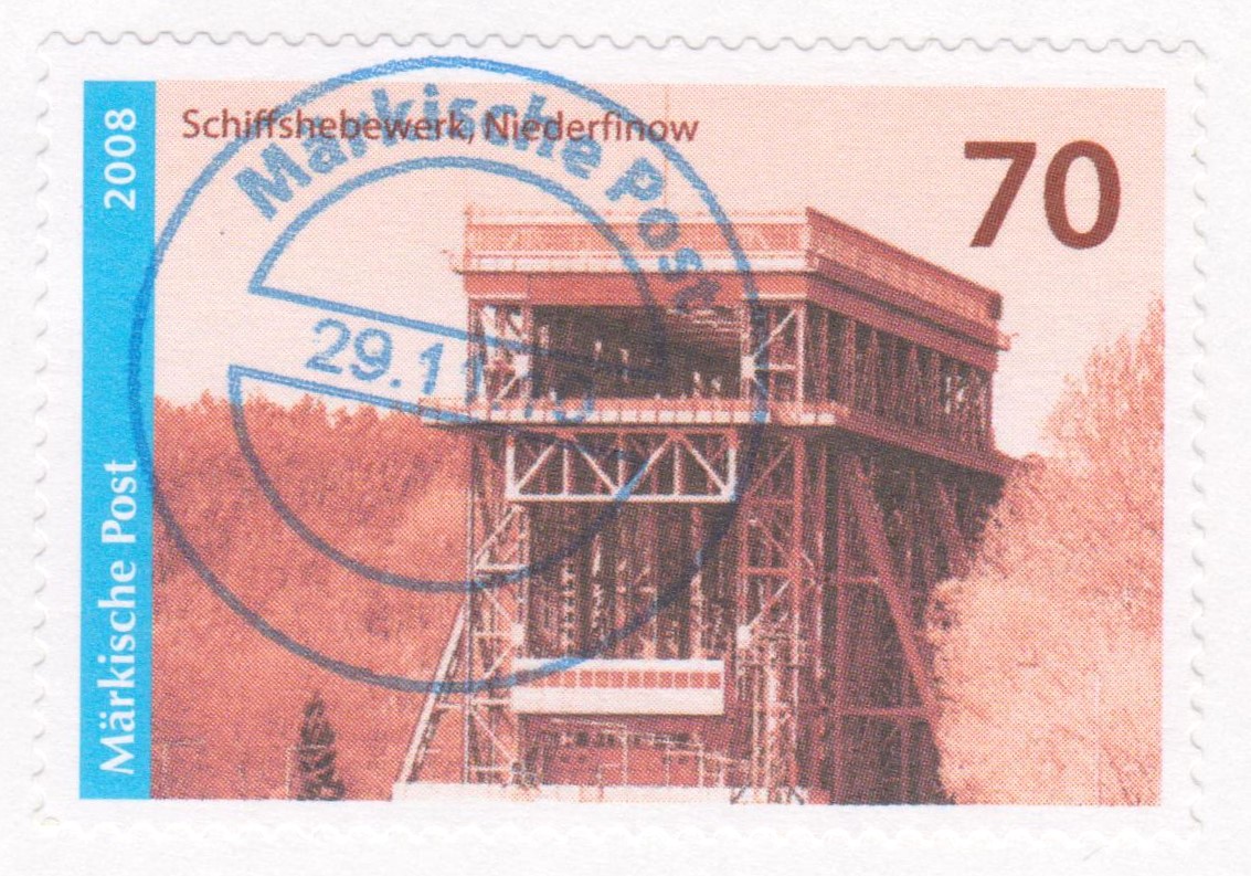 Postwertzeichen Märkische Post "Schiffshebewerk Niederfinow", Wertstufe 70 Cent, als Briefstück mit Tagesstempel Märkische Post 29.11.2010:
