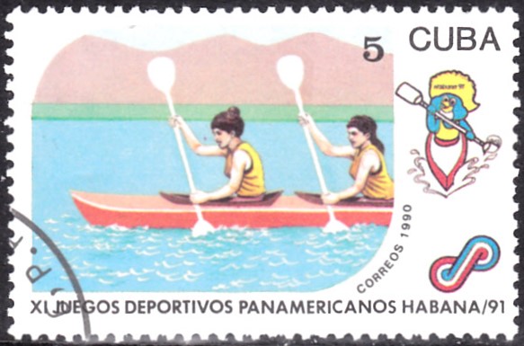 Aus Kuba kommt diese Marke (MiNr 3440) zu den Panamerikanischen Sportspiele 1991 in Havanna mit einem Zweier-Kajak der Damen.