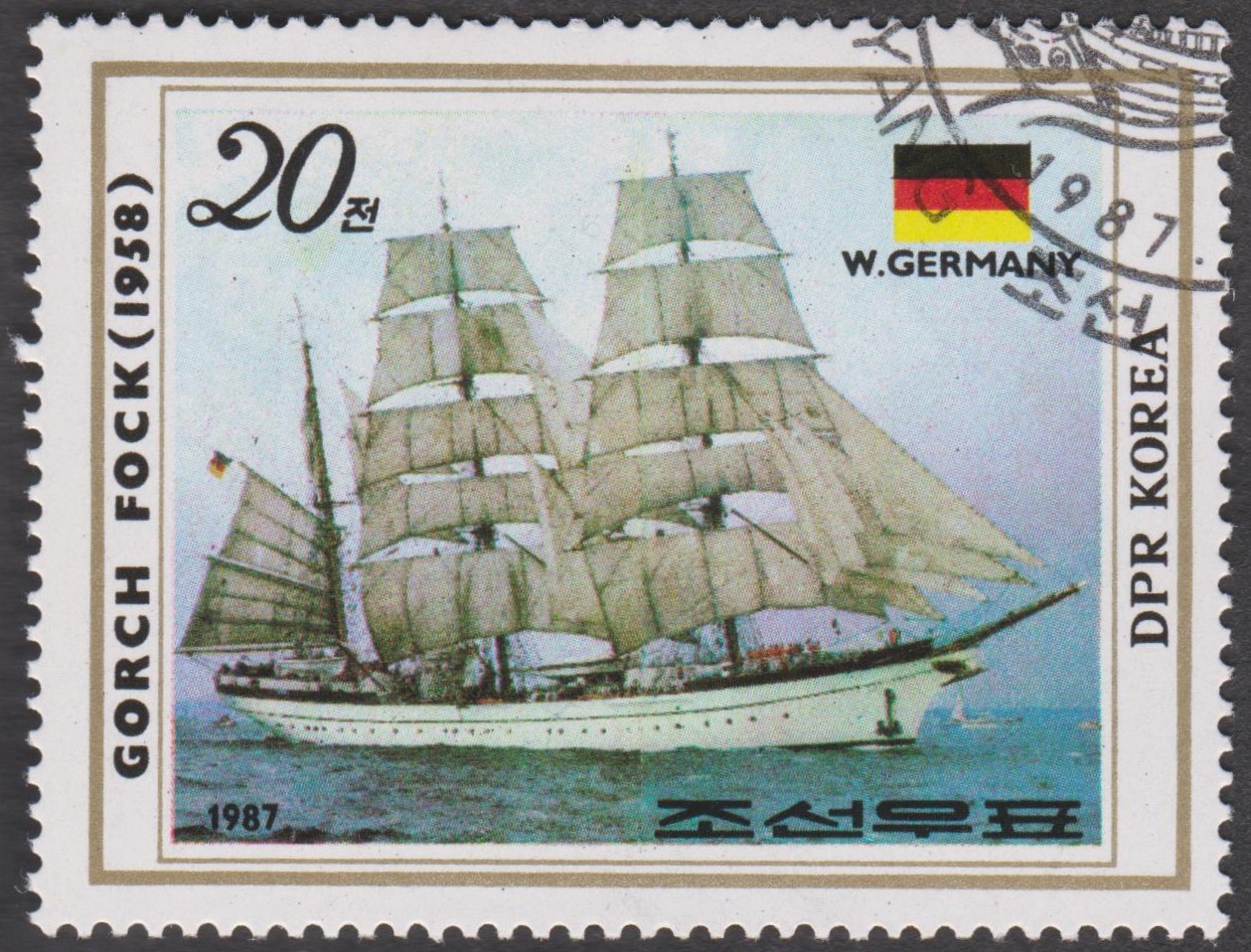 Nordkorea MiNr. 2811 erschien am 25.02.1987 und zeigt die Bark "Gorch Fock":
