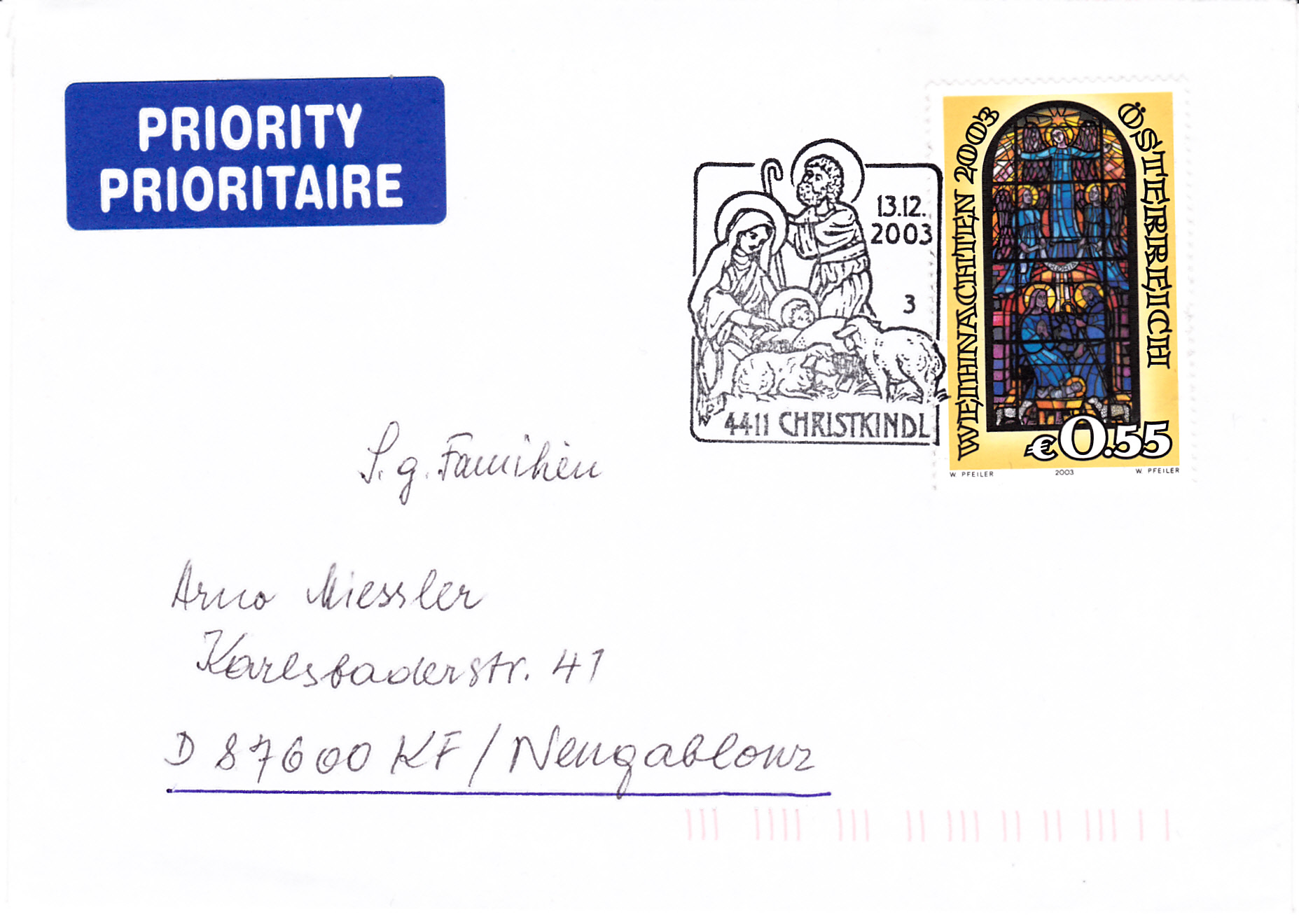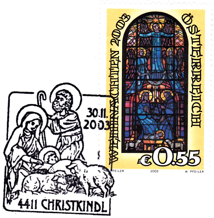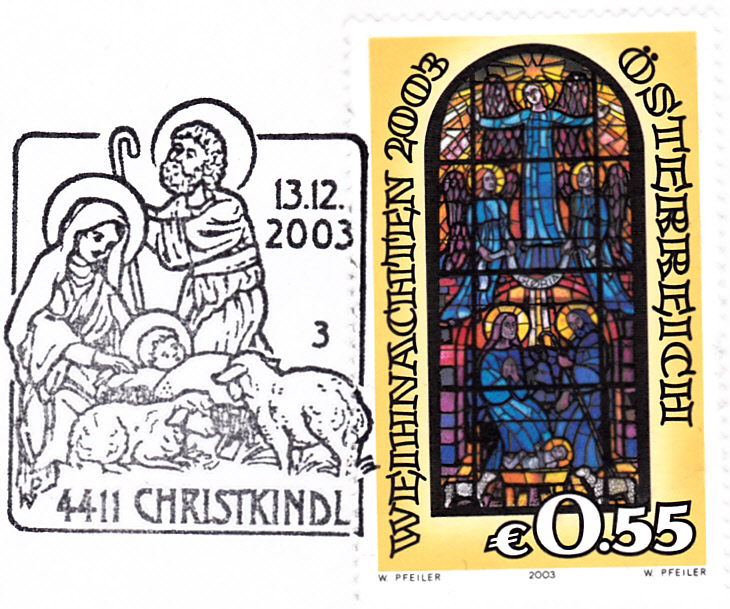 Dieser Beleg wurde am 22.12.2003 mit dem Aufkleber Über Christkindl in Bruck an der Leitha aufgegeben und ging über Christkindl nach Gaflenz. In Christkindl erhielt er am 24.12.2003 den Sonderstempel mit der Kennziffer "5".