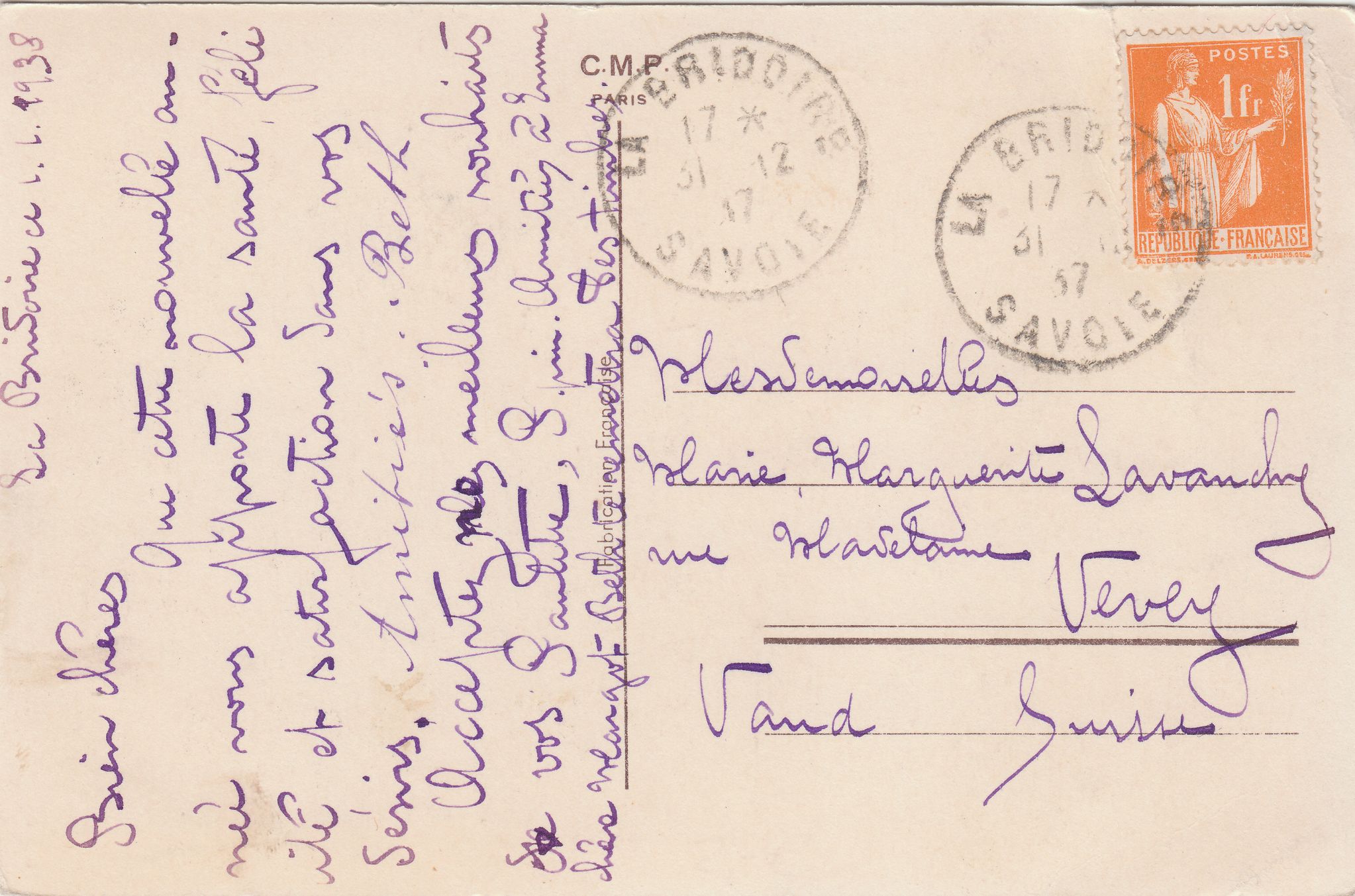 Diese Postkarte wurde am 31.12.1937 aufgegeben:
