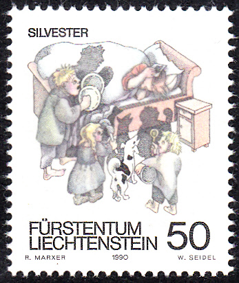 In Liechtenstein ist in einer Serie "Winterbräuche" auch eine Marke zu "Silvester" erschienen. Die Marke (MiNr 1009) zeigt das "Wecken am Silvestermorgen".