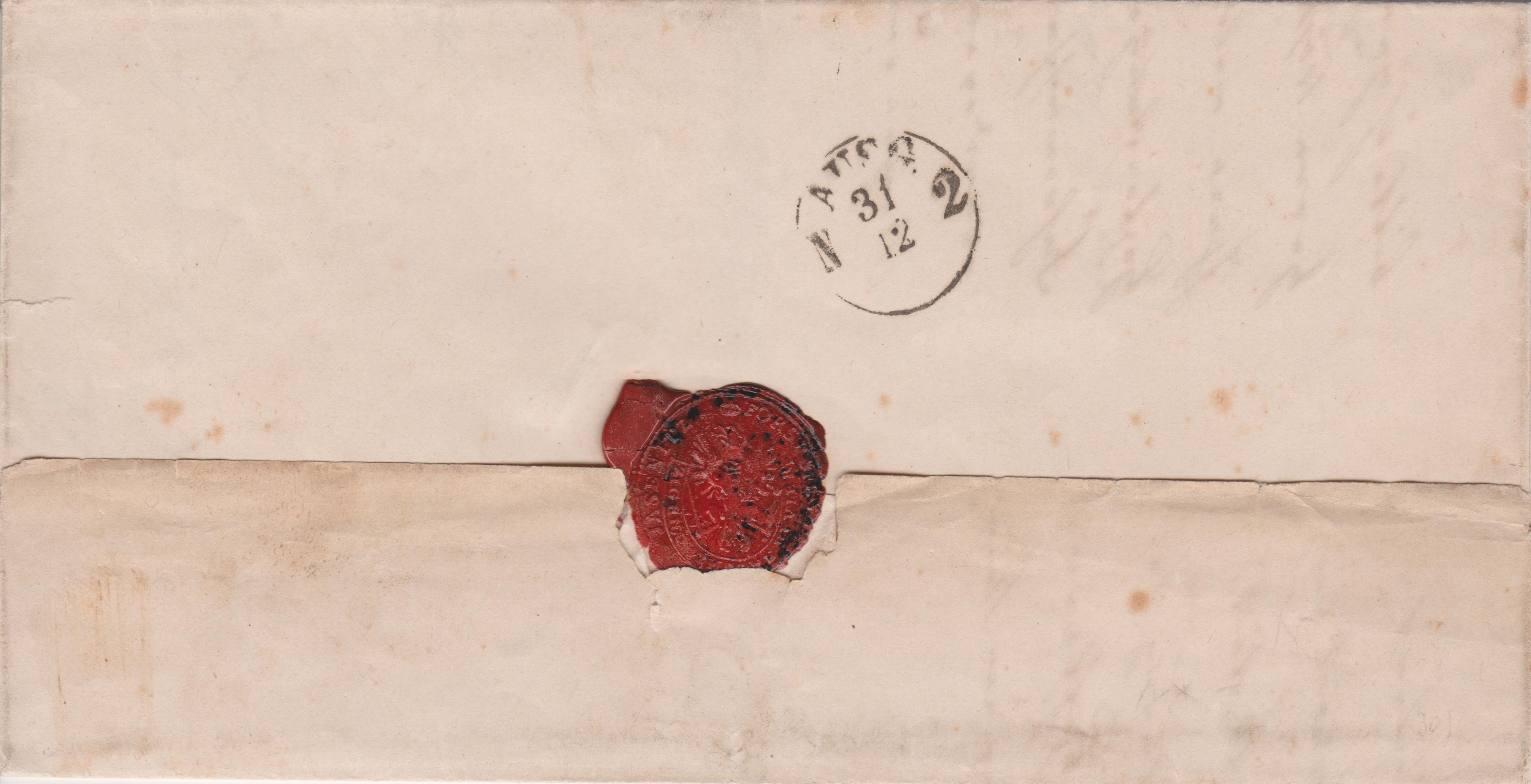 Rückseitig Ausgabestempel von Stettin datiert "31 12 N 2" (1856):