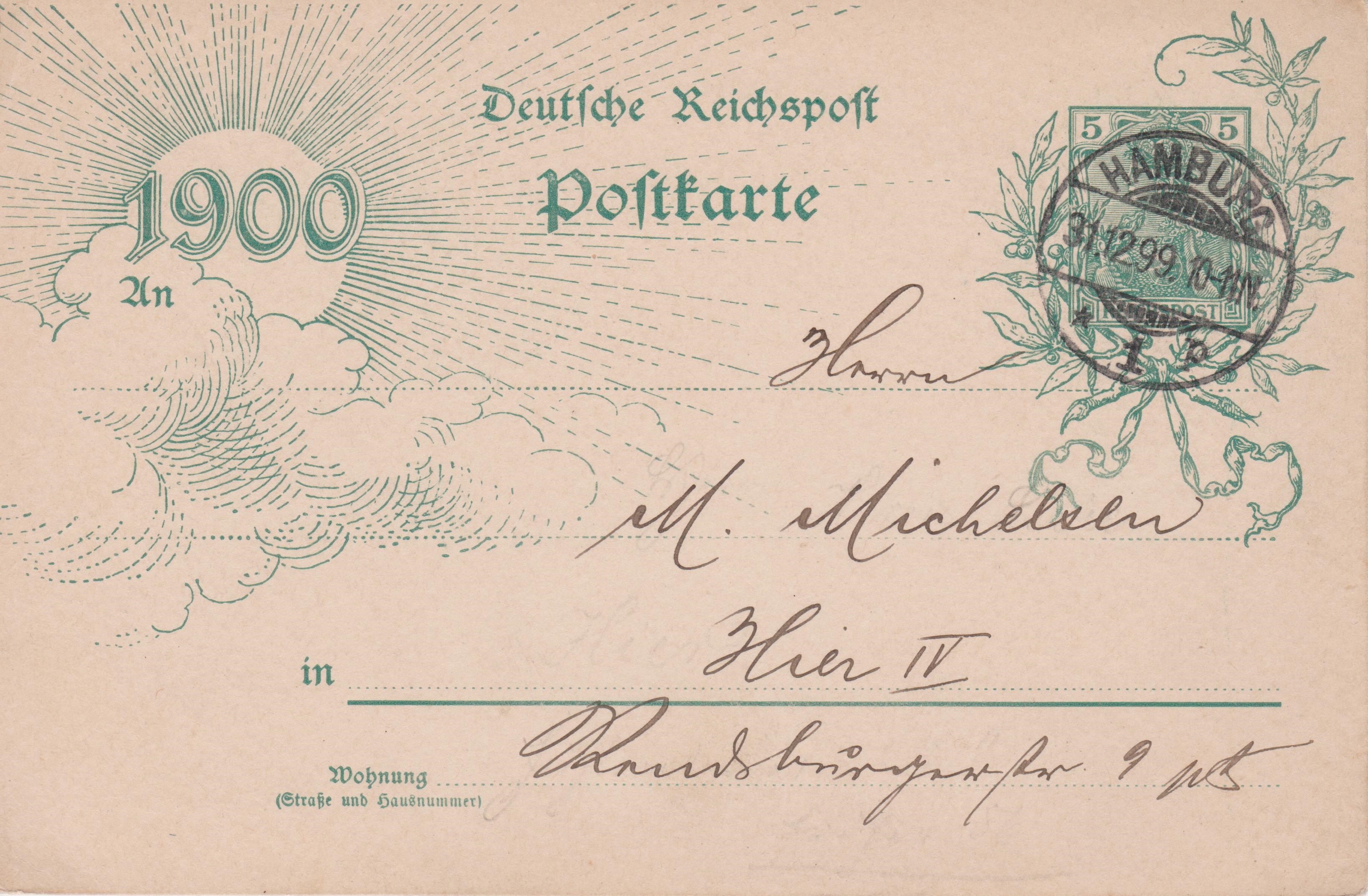 "Jahrhundertpostkarte 1900", aufgegeben am 31.12.1899 in HAMBURG 1: