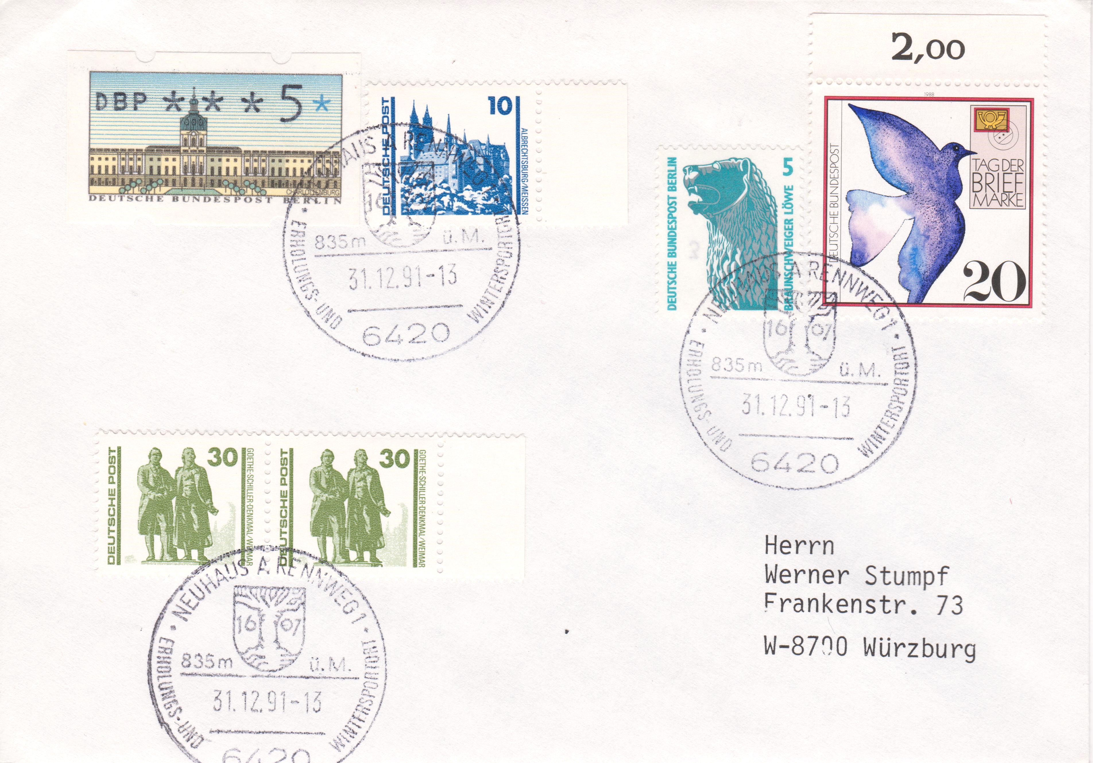 Bei diesen am 31.12.1963 in AMMERLAND nach München aufgegebenen Postkarten wurde das falsche Zustellamt angegeben, weshalb ein Hinweisstempel "FalschesZustellamt angegeben, daher verzögert" angebracht wurde: