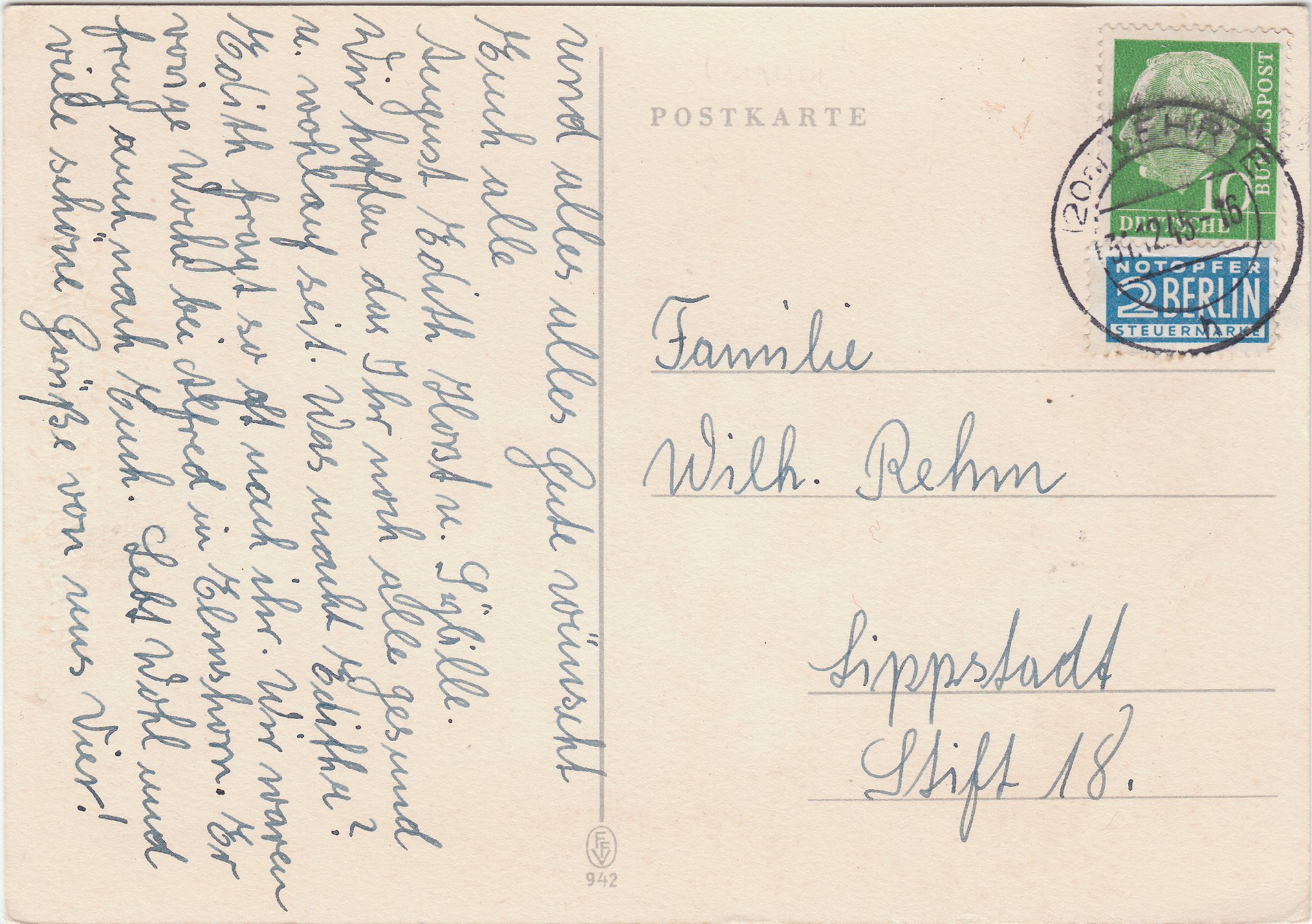 Dabei muß es sich um eine Fehleinstellung dieses Tagesstempels handeln, denn 1945 war die Freimarkenausgabe Heuss I noch gar nicht erschienen!