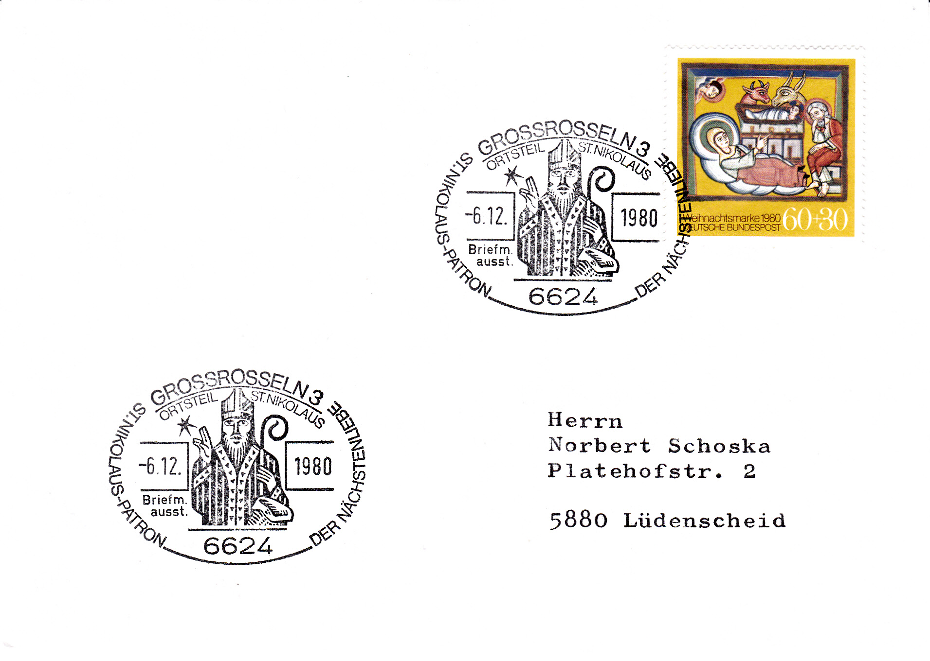 Im Sonderstempel vom 6.12.1990 ist die Kirche von St. Nikolaus und wie üblich auch ein Bild von St. Nikolaus persönlich zu sehen.