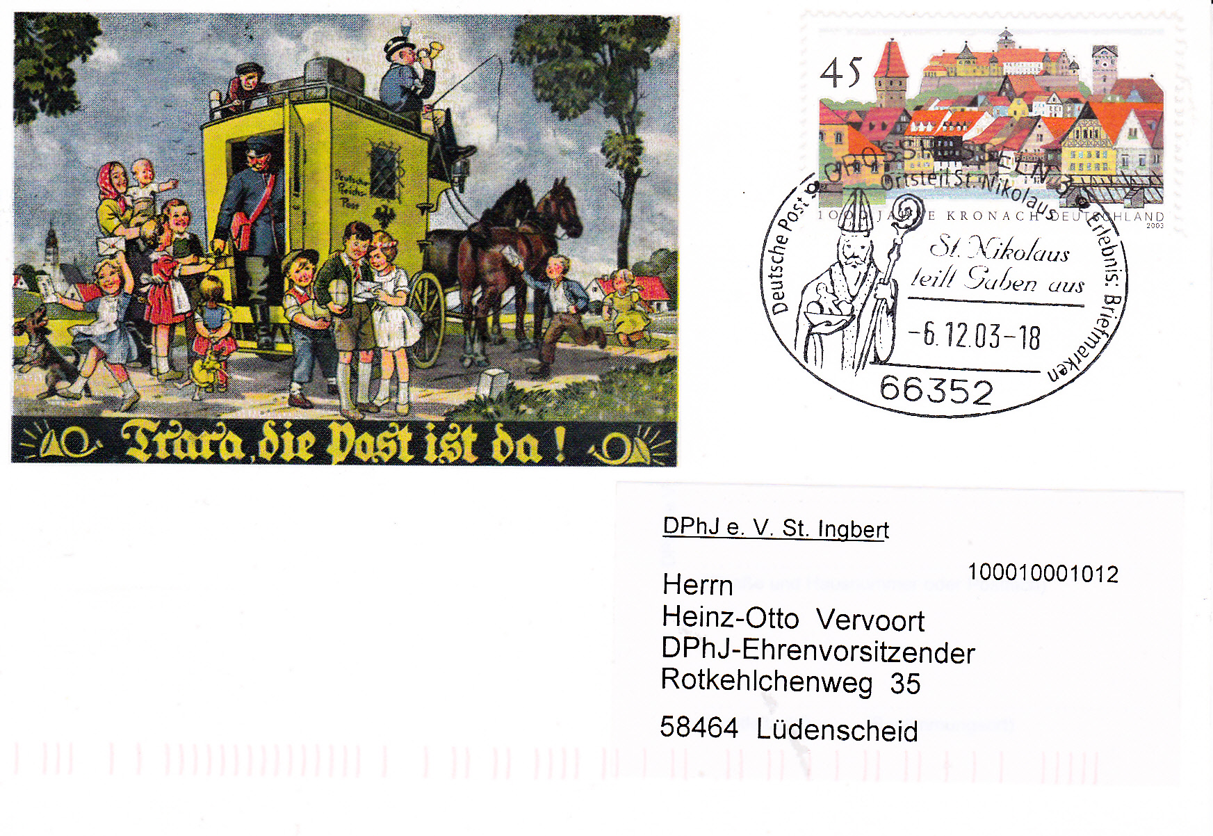 Ein bildgleicher Stempel wurde auch am 6.12.2002 noch verwendet, hier auf einem Umschlag vom "Büro Sankt Nikolaus"