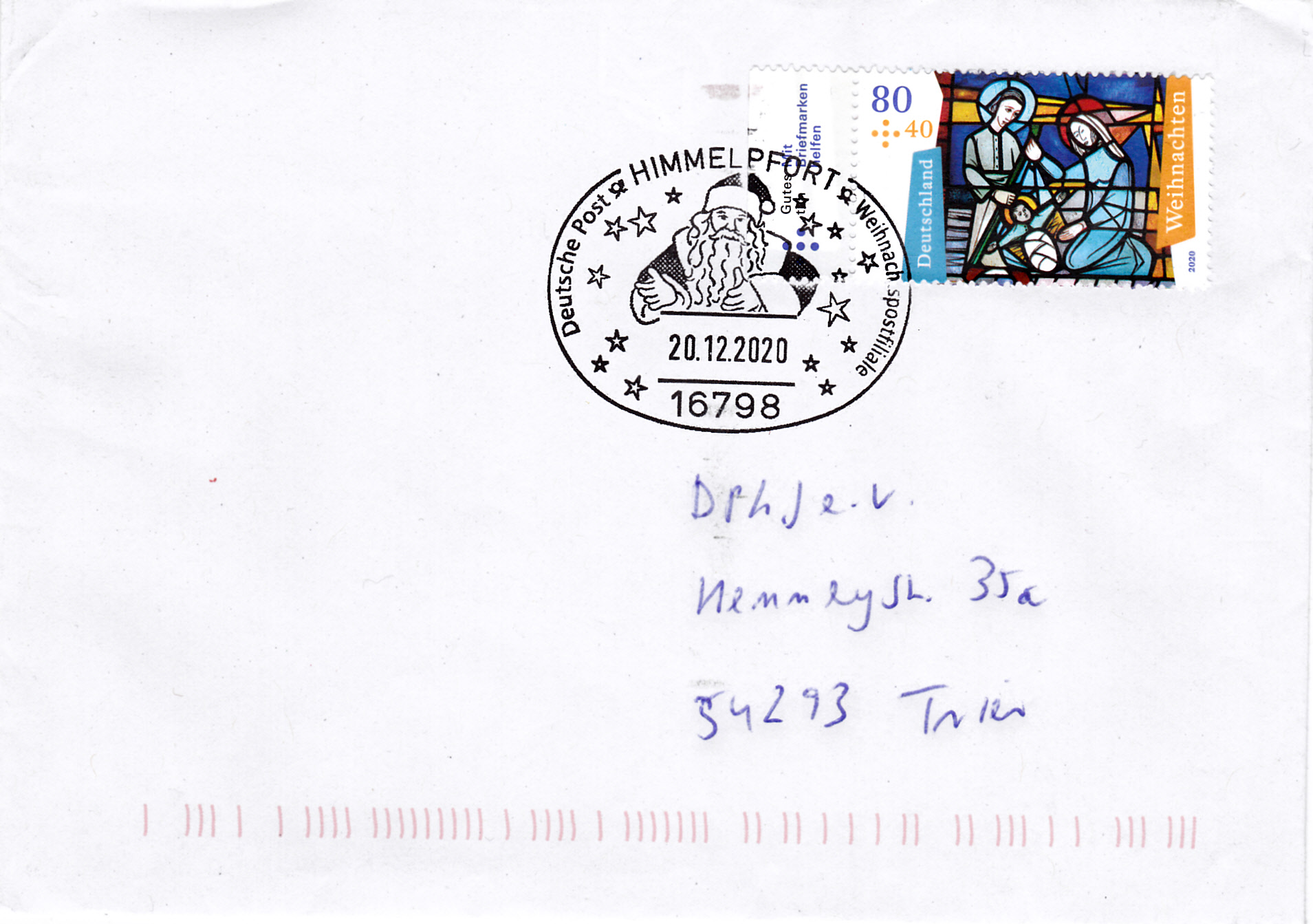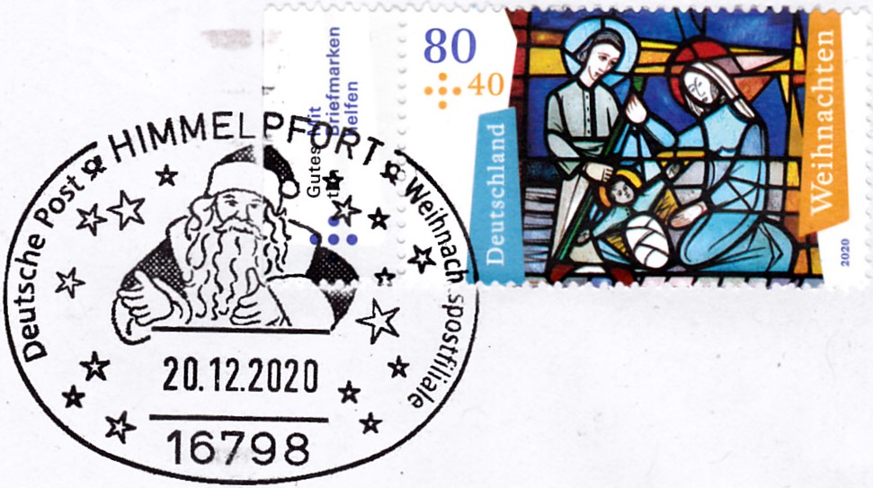 Den Stempel Himmelpfort gibt es auch mit anderen Daten, hier zum Beispiel mit dem Datum 20.12.2020.