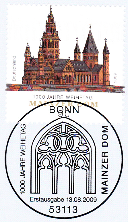 Diese Marke "1000 Jahre Weihetag Mainzer Dom" (MiNr. 2752) Ersttagsonderstempel Bonn entwertet.