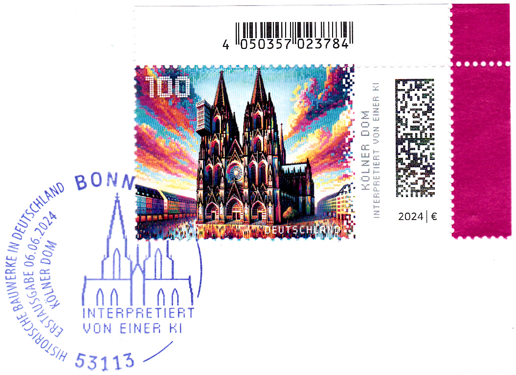 In der Serie " Historische Bauwerke in Deutschland" erschien bei der Deutschen Post eine Marke (MiNr 3832) mit der Hohen Domkirche Sankt Petrus mit Baugerüst in Köln (kurz Kölner Dom).