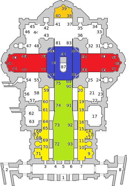 - Mittelschiff- Seitenschiffe- Querhaus- Vierung- ApsisInfo unter dem Link: