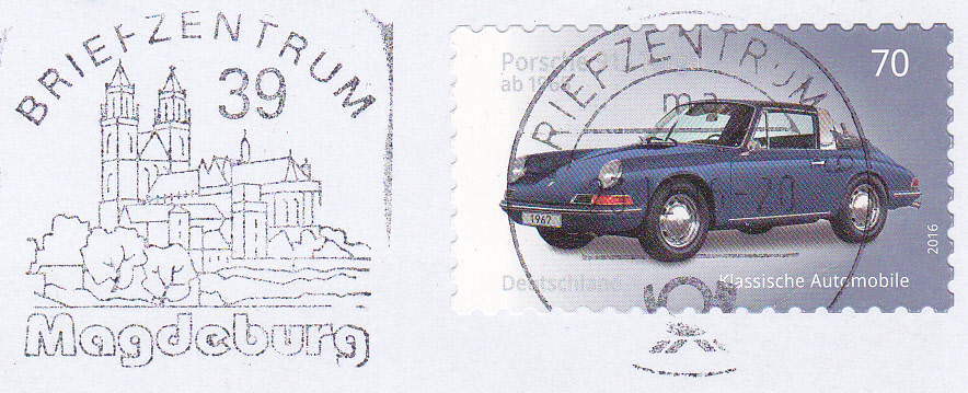 Maschinenwerbestempel vom 23.12.2016 des Briefzentrums 39 mit einer Abbildung des Magdeburger Domes.
