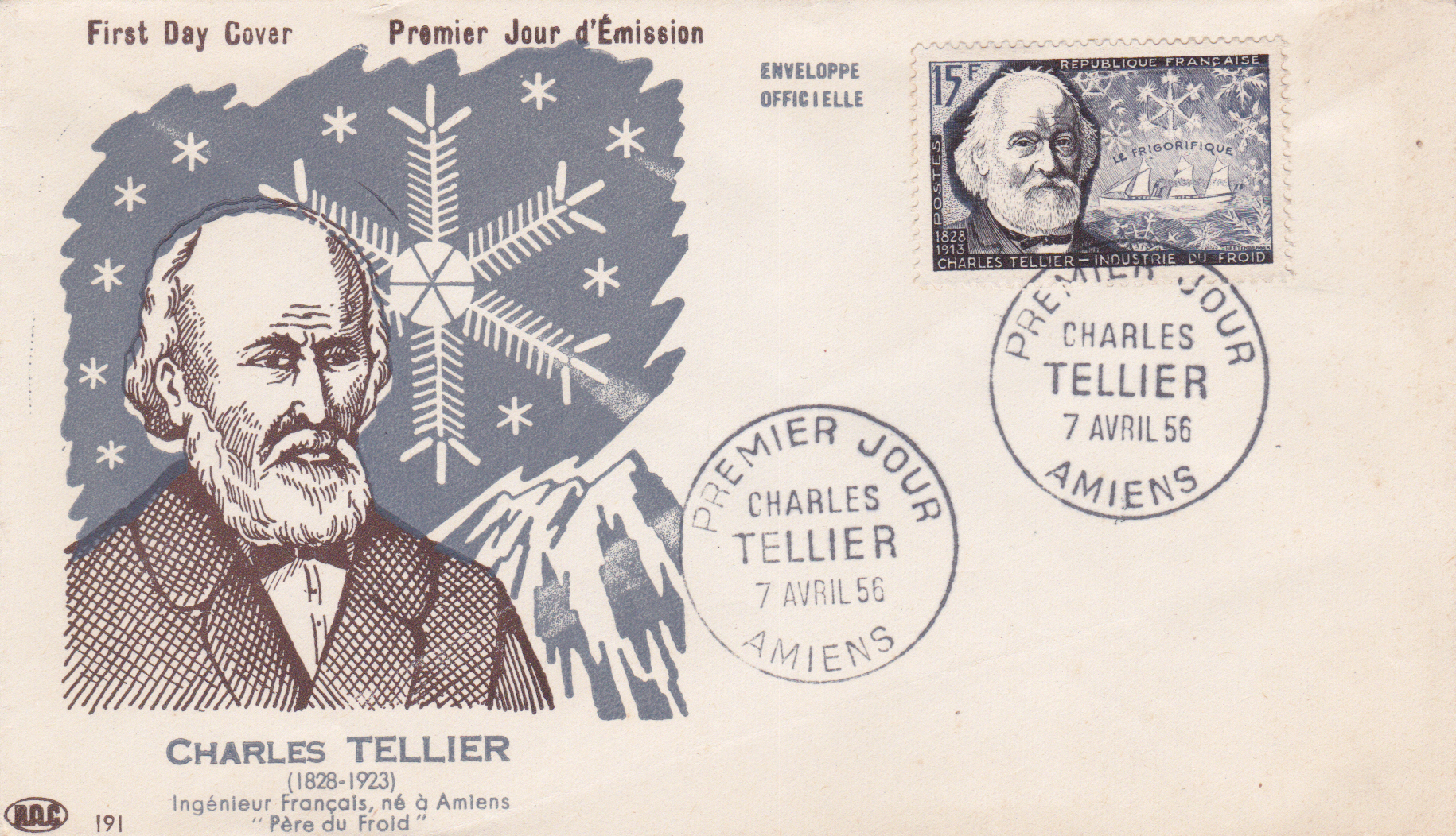In einer Serie "Französische Wissenschaftler des 19. und 20. Jahrhunderts" erschien in Frankreich 1956 ein Marke (MiNr 1084) mit einem Porträt von Charles Tellier und einem Eiskristall.