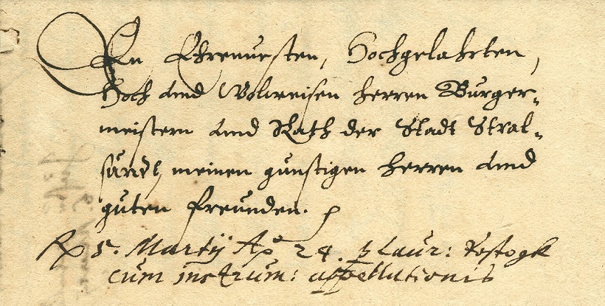 Für alle jugendlichen und junggebliebenen Freunde alter deutscher Schreibstile möchte ich gern eine Lese- und Transcriptionsmöglichkeit einstellen. Eine, die in die Zeit des 30jährigen Krieges datiert.