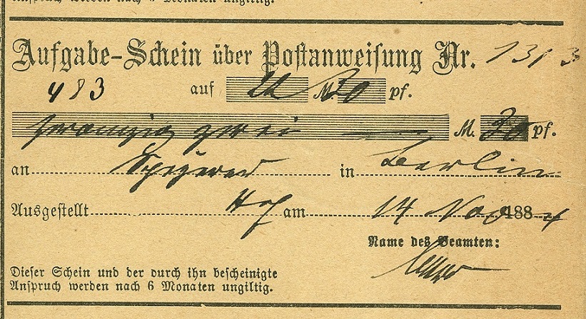 Die rückseitigen Tagesstempel bestätigen den 14. November 1884.