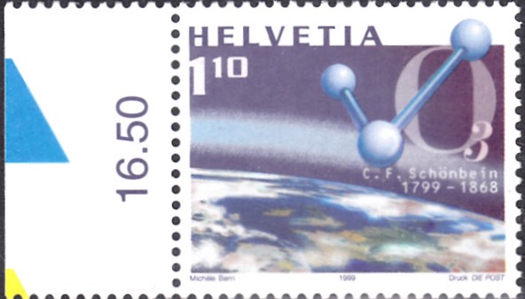 Zum 200. Geburtstag von Christian Friedrich Schönbein ist in der Schweiz eine Marke (MiNr 1697) mit einer Abbildung der Erde mit Stratosphäre und einem Modell des Ozons erschienen.