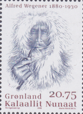 Aus Dänemark Grönland kommt diese Marke (MiNr 469)mit einem Porträt von Alfred Wegener.