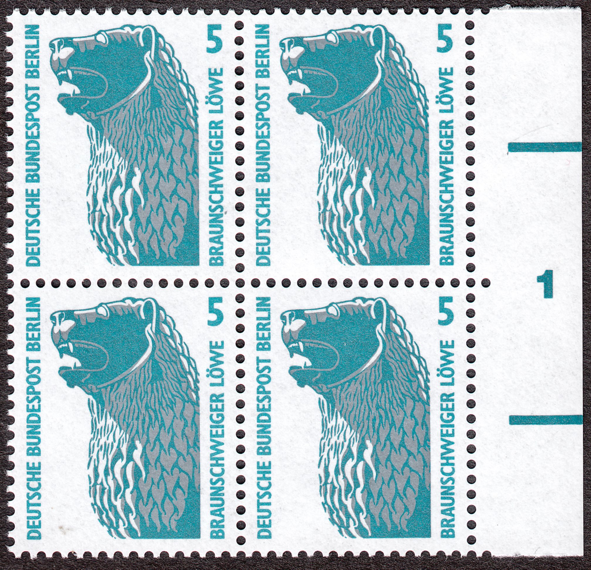 Foren-Übersicht Fragen und Diskussion Deutschland Deutschland ab 1945 Berlin Dauerserien Sehenswürdigkeiten = SWK 5 Pfennig - MiNr. 863 Ein Exponat entsteht Das philatelistische Material Postfrischer Viererblock mit Formnummer "1"