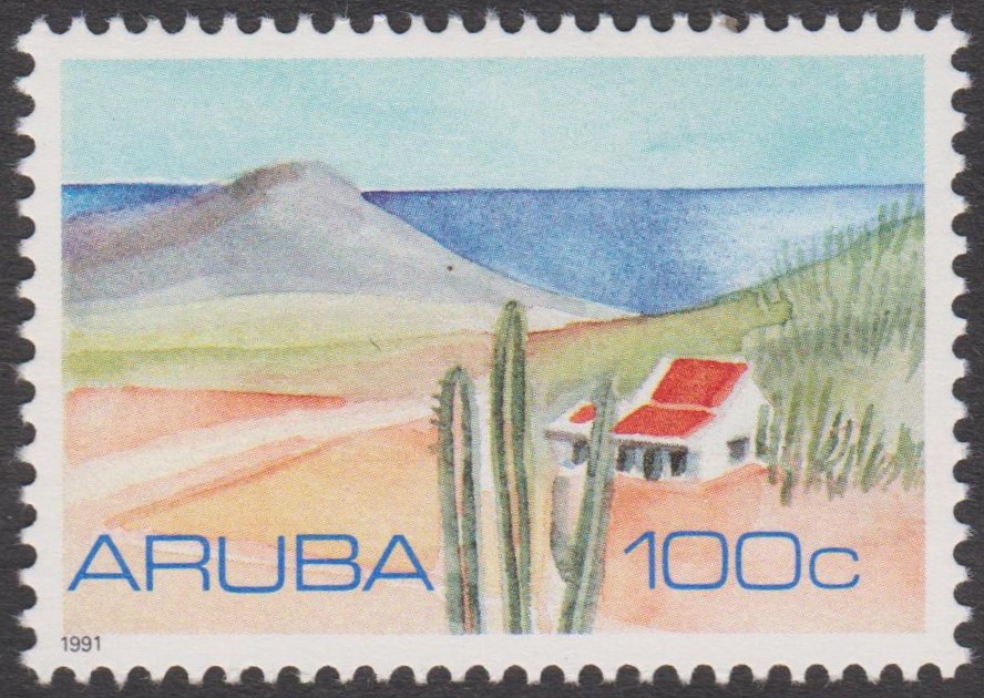 Aruba MiNr. 88 erschien am 31.01.1991 zum Thema "Landschaften" und zeigt eine Kakteenlandschaft: