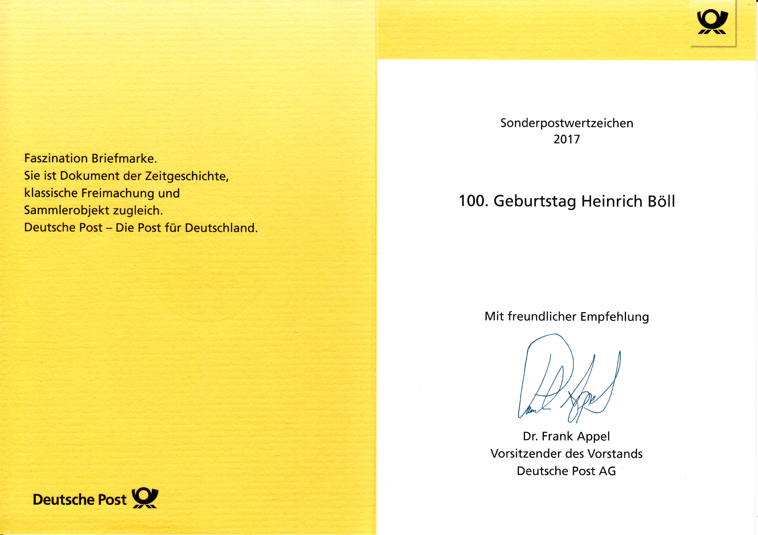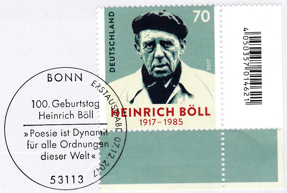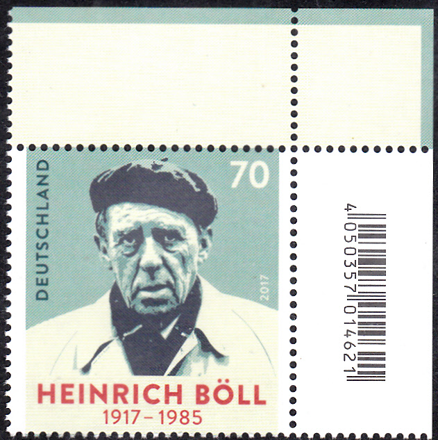 Zu seinem 100. Geburtstag erschein bei der Deutschen Post eine Sondermarke (MiNr 3350) mit seinem Porträt. Hier ein Eckrandstück mit EAN-Code.