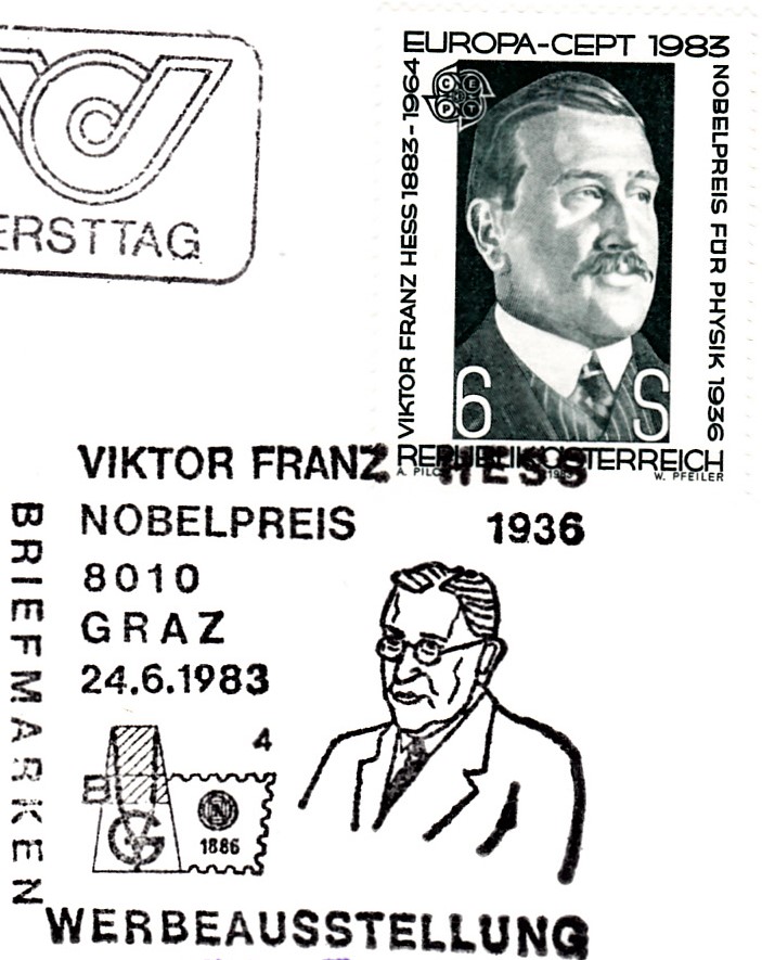In Österreich erschien die Europamarke 1983 zum Thema "Große Werke des menschlichen Geistes" mit einem Porträt von Viktor Franz Hess.