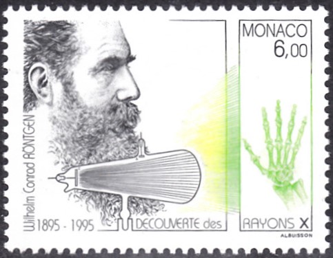 Zum 100. Jahrestag der Entdeckung der Röntgenstrahlen durch Wilhelm Conrad Röntgen erschien 1995 in Monaco eine Marke (MiNr 2261) mit einem Porträt von Wilhelm Conrad Röntgen und einer Röntgenaufnahme einer Hand.