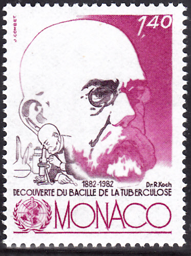 Zum 100. Jahrestag der Entdeckung des Tuberkulose-Erregers durch Robert Koch ist auch in Monaco eine Marke (MiNr 1357) mit einem Porträt von Robert Koch erschienen.