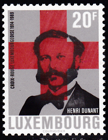 zum Jubiläum "75 Jahre Luxemburger Rotes Kreuz" erschien in Luxemburg eine Marke mit einem Porträt von Henri Dunant. (MiNr 1216).